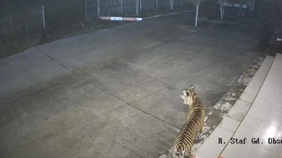 Dalam rekaman tersebut, harimau tampak mengelilingi gedung perkantoran dan kemudian menuju bagian belakang kantor. "Harimau terekam di sejumlah titik CCTV milik kantor BRIN," ujarnya.