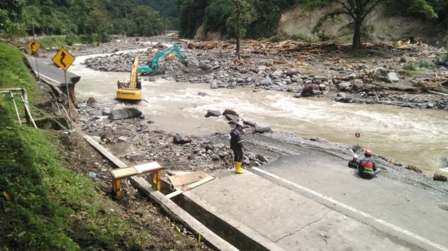SuaraSumbar.id - Jalan nasional di Lembah Anai, Sumatera Barat (Sumbar) masih putus total akibat banjir bandang.