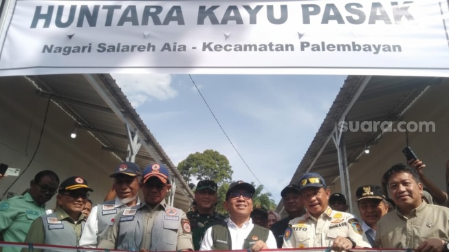 Secara simbolis, peresmian dan penyerahan kunci dilakukan di Huntara yang berada di Lapangan Kayu Pasak, Jorong Kayu Pasak, Nagari Salareh Aia, Kacamatan Palembayan, Kabupaten Agam.