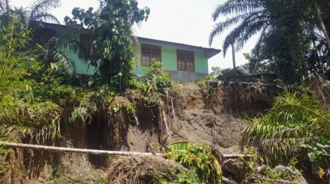 Sekolah dan rumah warga di Pasaman Barat terancam runtuh akibat abrasi sungai.