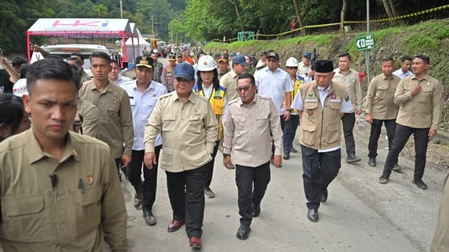 SuaraSumbar.id - Presiden Prabowo meninjau jalan nasional Lembah Anai yang putus total akibat bencana hidrometeorologi di Kabupaten Tanah Datar, Sumatera Barat (Sumbar), Kamis (18/12/2025).
