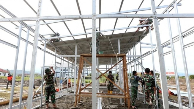Pembangunan huntara libatkan TNI-Polri dan pemerintah daerah setempat.